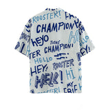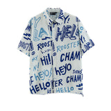 A youth-inspired hip hop style shirt made from 100% polyester fiber. Featuring a sharp collar, short sleeves, and a loose fit, this shirt offers both comfort and a trendy look. The printed design and lightweight fabric make it perfect for summer daily wear, while the durable free-hot treatment ensures lasting quality. Available in classic white, this shirt blends modern streetwear style with casual comfort.