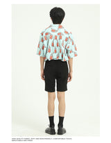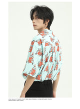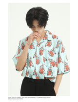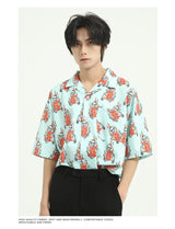 A casual Korean-style loose shirt for men made from a chemical fiber blend. Featuring a lapel collar, short sleeves, and a skull pattern, this lightweight shirt is comfortable and stylish for everyday wear or casual outings.
