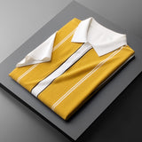 A light business-style short sleeve shirt designed with a lapel collar and straight fit. Made with thin, breathable fabric, it is perfect for summer wear. The striped color-matching design adds a touch of elegance, while the non-iron treatment ensures easy care and a neat look. Suitable for youth and ideal for both leisure and semi-formal occasions, this shirt combines comfort with a modern business-casual style.