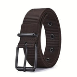 This belt is made from cloth and features a durable iron pin buckle. Treated with electroplating, it has a standard width suitable for everyday wear. Available in Black, Army Green, Khaki, Gray, Dark Blue, and Brown, and with a length of 120 cm, it combines simplicity with versatility for any outfit.