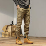 These mid-waist work trousers are made from thickened cotton fabric, perfect for youth casual and leisure wear across all seasons. Available in khaki, black, army green, and gray, they offer medium elasticity and a durable dyed finish.