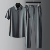This casual suit for men is perfect for everyday wear. It features a short-sleeve top paired with comfortable trousers, designed for a relaxed and stylish look. Available in classic blue and gray colors, this suit combines simplicity with versatility, making it ideal for casual outings or leisure activities.
