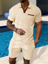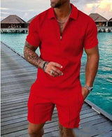This sporty summer outfit features a short-sleeve T-shirt paired with matching shorts, perfect for sports, exercise, or casual leisure wear. Made from a thin chemical fiber blend with polyester, it is lightweight, breathable, and allows easy movement. The set comes in multiple colors, offering versatile style options.