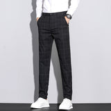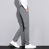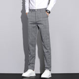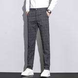 These low-waist straight-leg trousers are crafted from soft polyester fiber with micro elasticity, offering comfort and flexibility for everyday wear. The long straight-leg design provides a neat, clean look suitable for casual or semi-formal occasions. Available in light gray, black, and dark gray, these pants are versatile and easy to style.