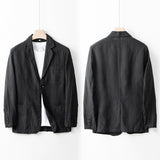 This Men’s Linen Jacket combines casual style with comfort, making it ideal for year-round wear. Crafted from high-quality linen, it offers breathability and a lightweight feel. The long sleeves and solid color design provide a clean and versatile look. Available in White, Black, Linen, Sky Blue, and Navy Blue, this jacket easily matches a variety of outfits.