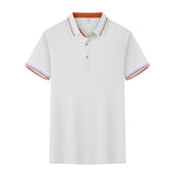 This slim fit pullover is made from a comfortable cotton blend fabric. It is available in colors such as white, black, dark gray, red, navy blue, orange, light blue, and matcha. Designed with short sleeves, it offers a sleek and stylish fit suitable for various occasions.
