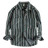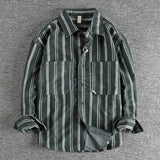 Japanese Retro Loose-Fit Striped Long Sleeve Shirt