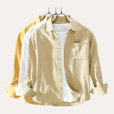 A classic long-sleeve cardigan made from soft cotton fabric, designed for year-round wear. Featuring a solid color pattern in versatile shades, this cardigan offers comfort and style for men in any season.