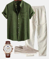 Stay stylish and comfortable this summer with this youth-oriented two-piece set. It features a short-sleeved cardigan-style top and matching pants, crafted from a four-sided elastic polyester fiber for a soft, breathable, and flexible fit. Perfect for leisure, casual outings, or everyday wear, this set combines comfort with a modern look. Available in multiple sizes to suit different preferences.