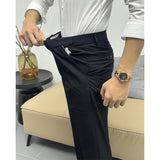 Stay comfortable and stylish this summer with these micro-elastic leisure pants for men. Made from a polyester chemical fiber blend, they provide flexibility, durability, and a relaxed fit. Designed for middle-aged adults, these slightly tapered pants are perfect for casual or daily wear. Available in a variety of versatile colors to suit any outfit.